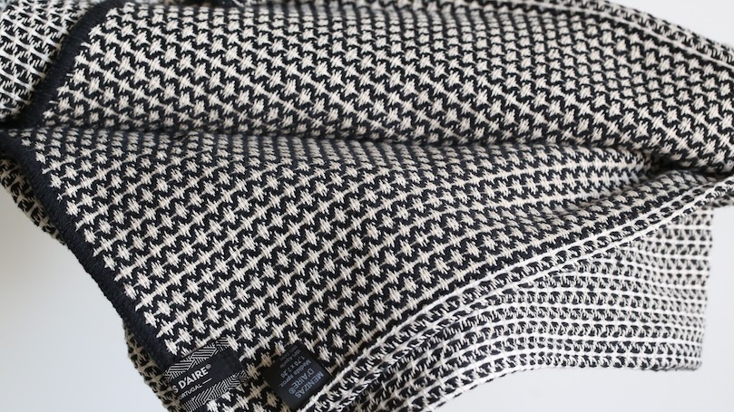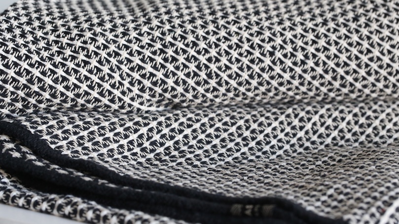 Deze mooie soepele grote katoenen plaid in traditioneel patroon met zwart en wit geweven