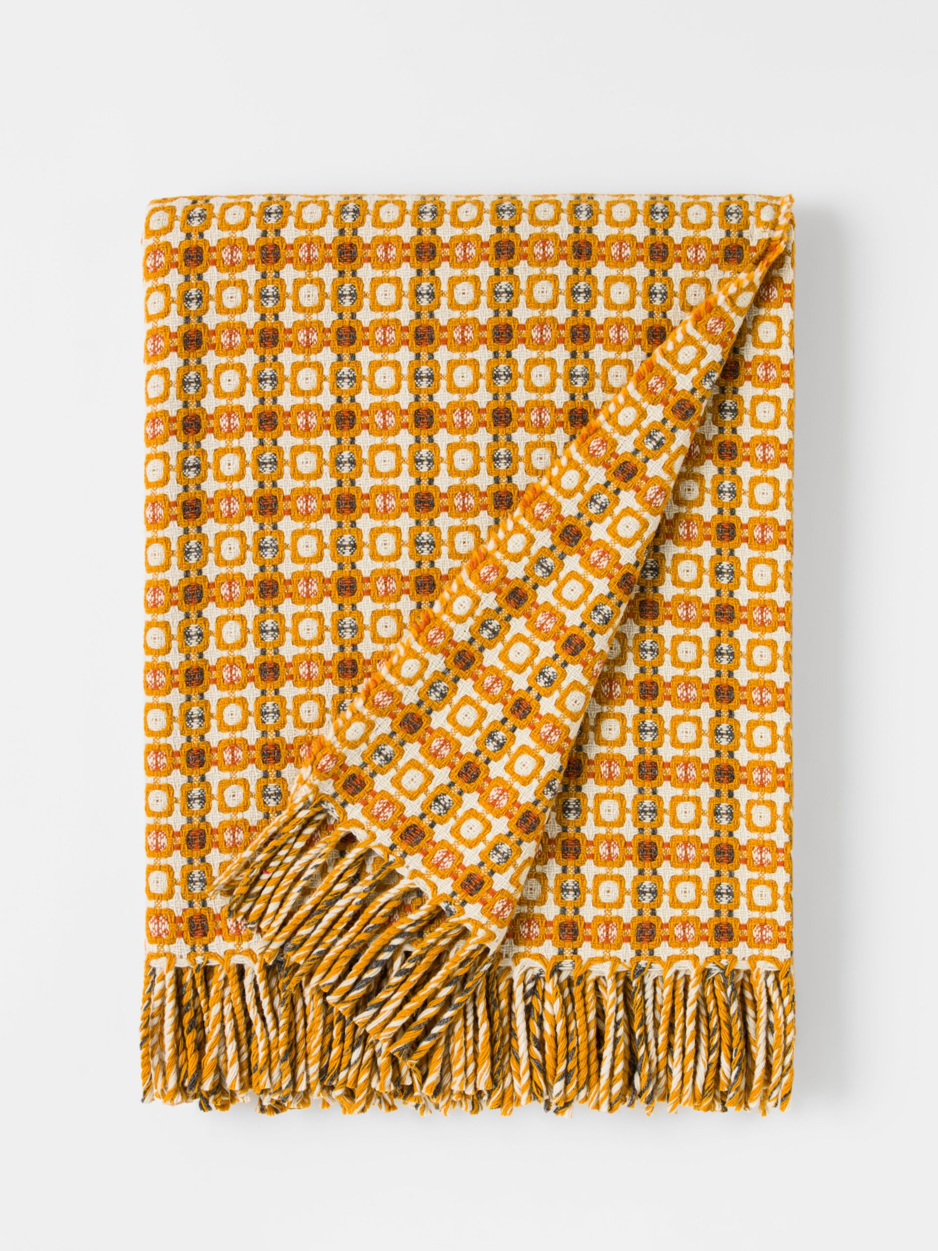 Warme wollen deken met okergeel en rood